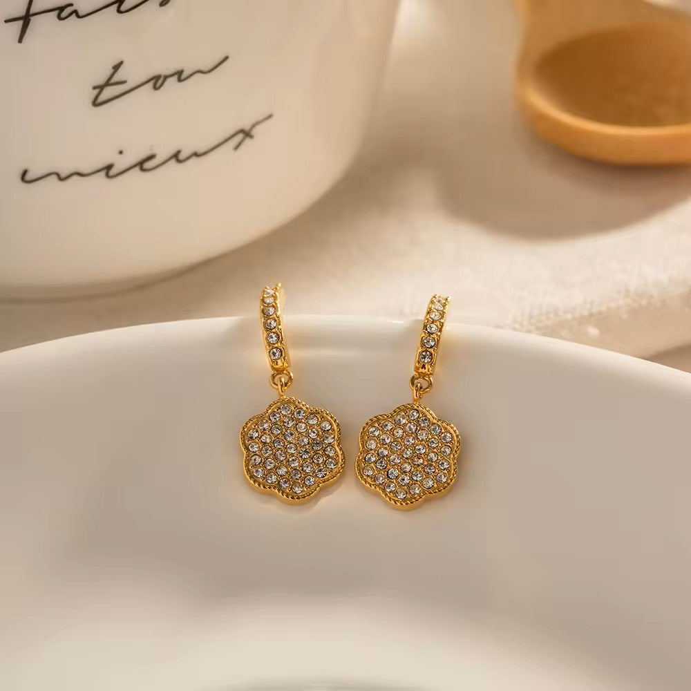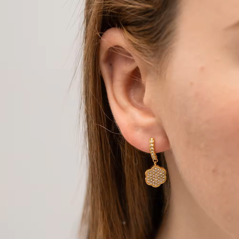 Crafted from stainless steel and 18k gold plating, these Flower Drop Earrings are not only stylish but also waterproof and hypoallergenic. Say goodbye to tarnishing and irritation, these earrings offer both beauty and functionality. Upgrade your accessory game with this must-have piece.